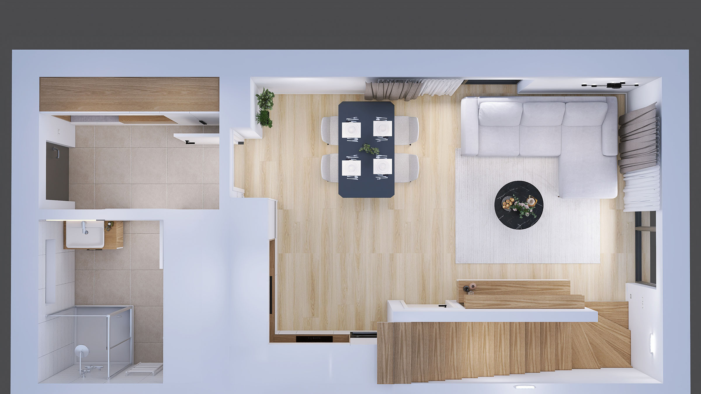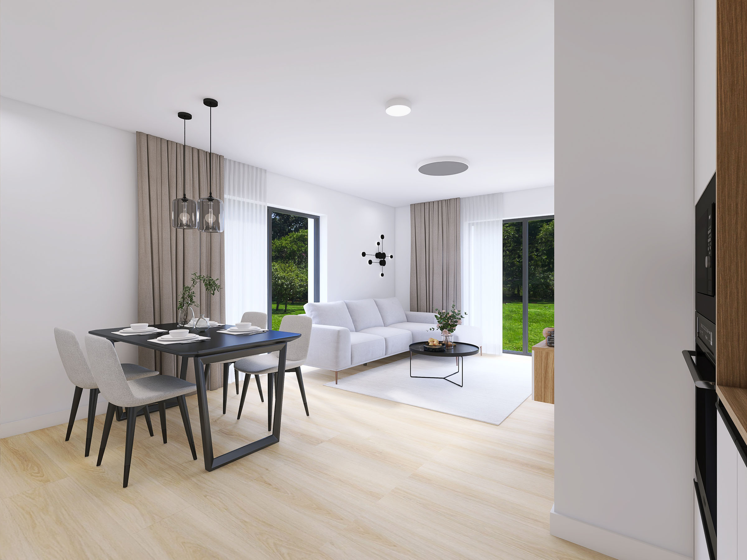 Klienti mají možnost volby finálních povrchových úprav interiéru – podlahových krytin, dveří, obkladů i dlažby – dle vlastního vkusu a preferencí.