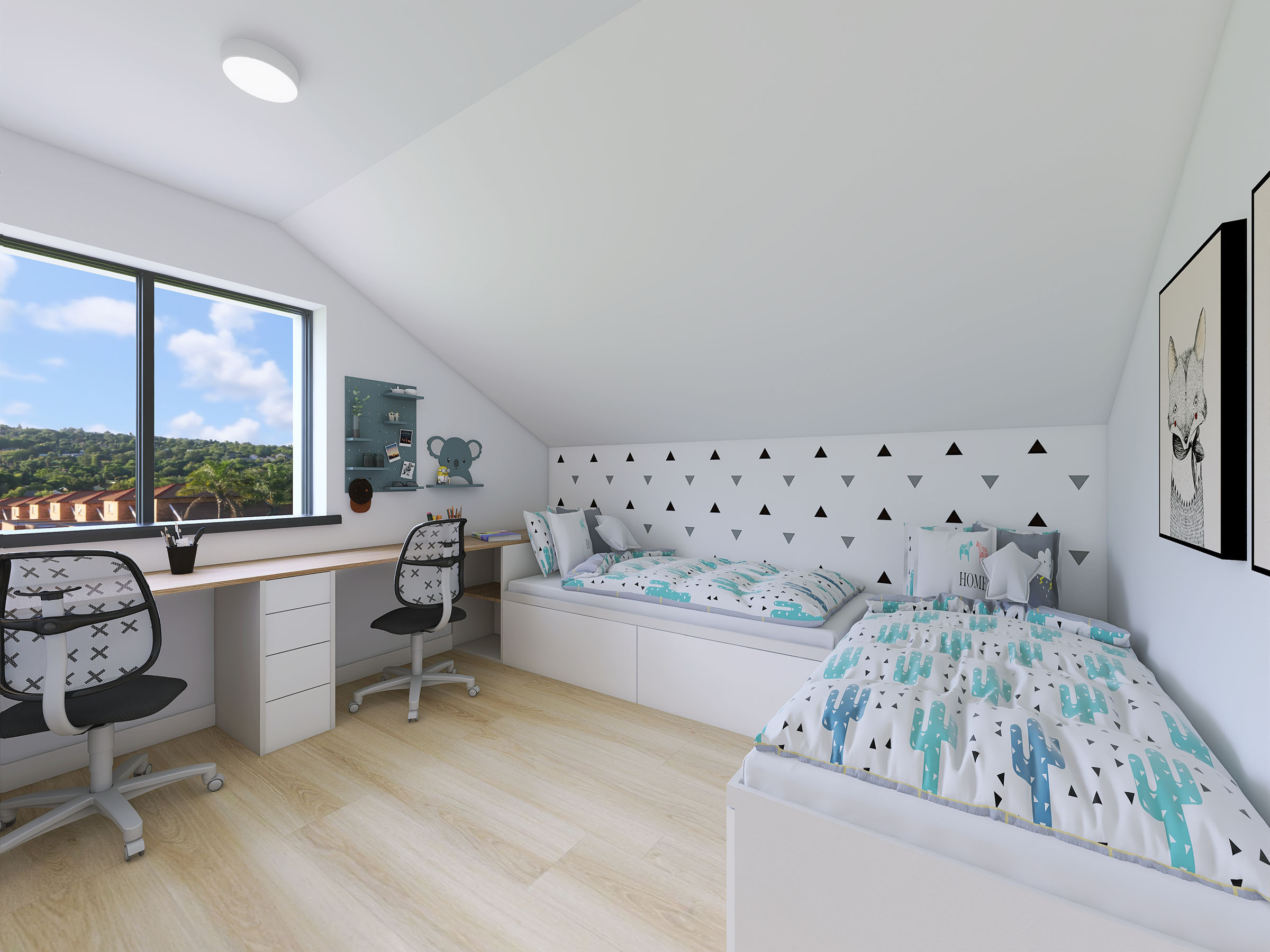 Nízkoenergetický mezonetový byt o dispozici 3+kk a podlahové ploše 85,5 m², který je součástí trojdomu – tedy domu se třemi samostatnými jednotkami. Svým uspořádáním připomíná spíše řadový rodinný dům, ideální pro moderní a úsporné bydlení. V přízemí se nachází prostorný obývací pokoj s kuchyňským koutem, koupelna a zádveří. V patře pak najdete ložnici, další pokoj, druhou koupelnu a chodbu. K bytu náleží také snadno udržovatelná zahrada o rozloze 191 m², která nabízí prostor pro relaxaci i volnočasové aktivity.