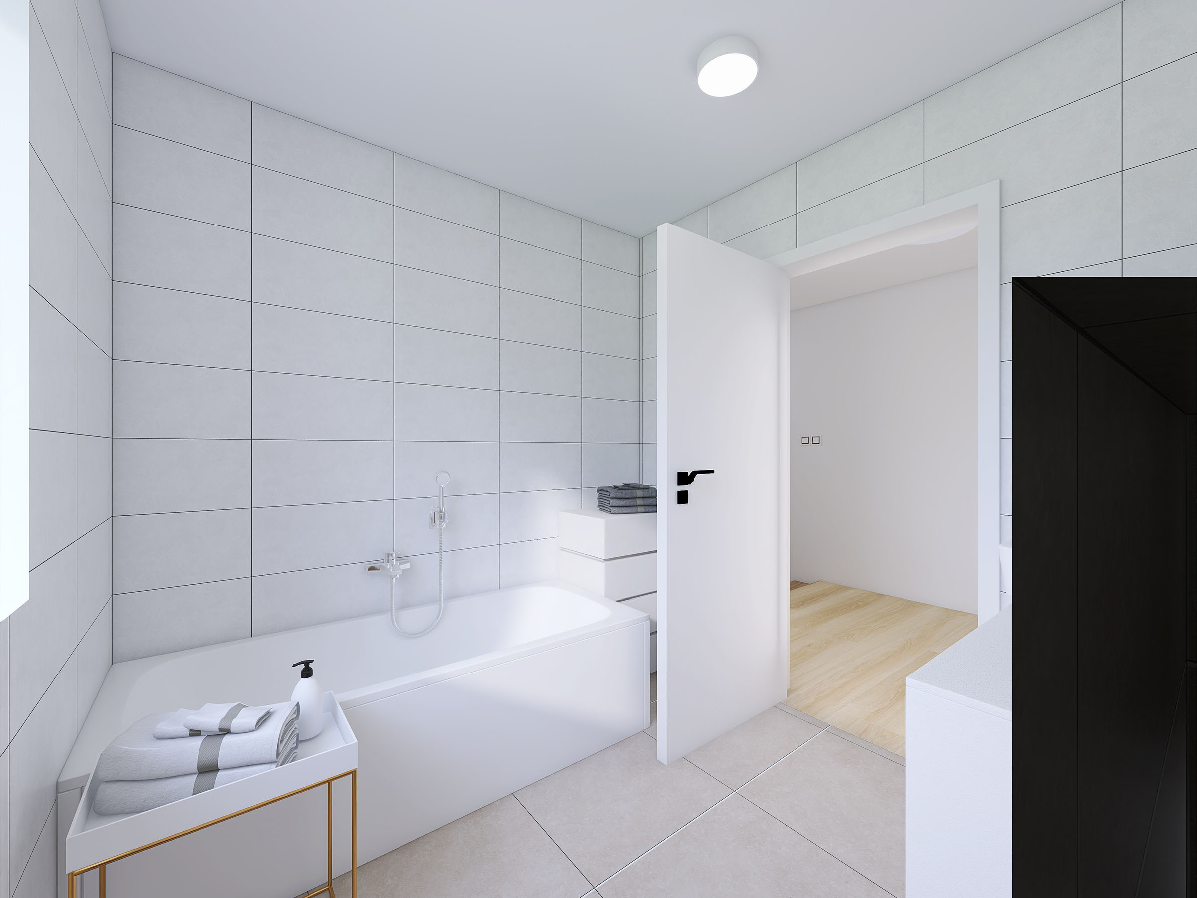 Klienti mají možnost volby finálních povrchových úprav interiéru – podlahových krytin, dveří, obkladů i dlažby – dle vlastního vkusu a preferencí.